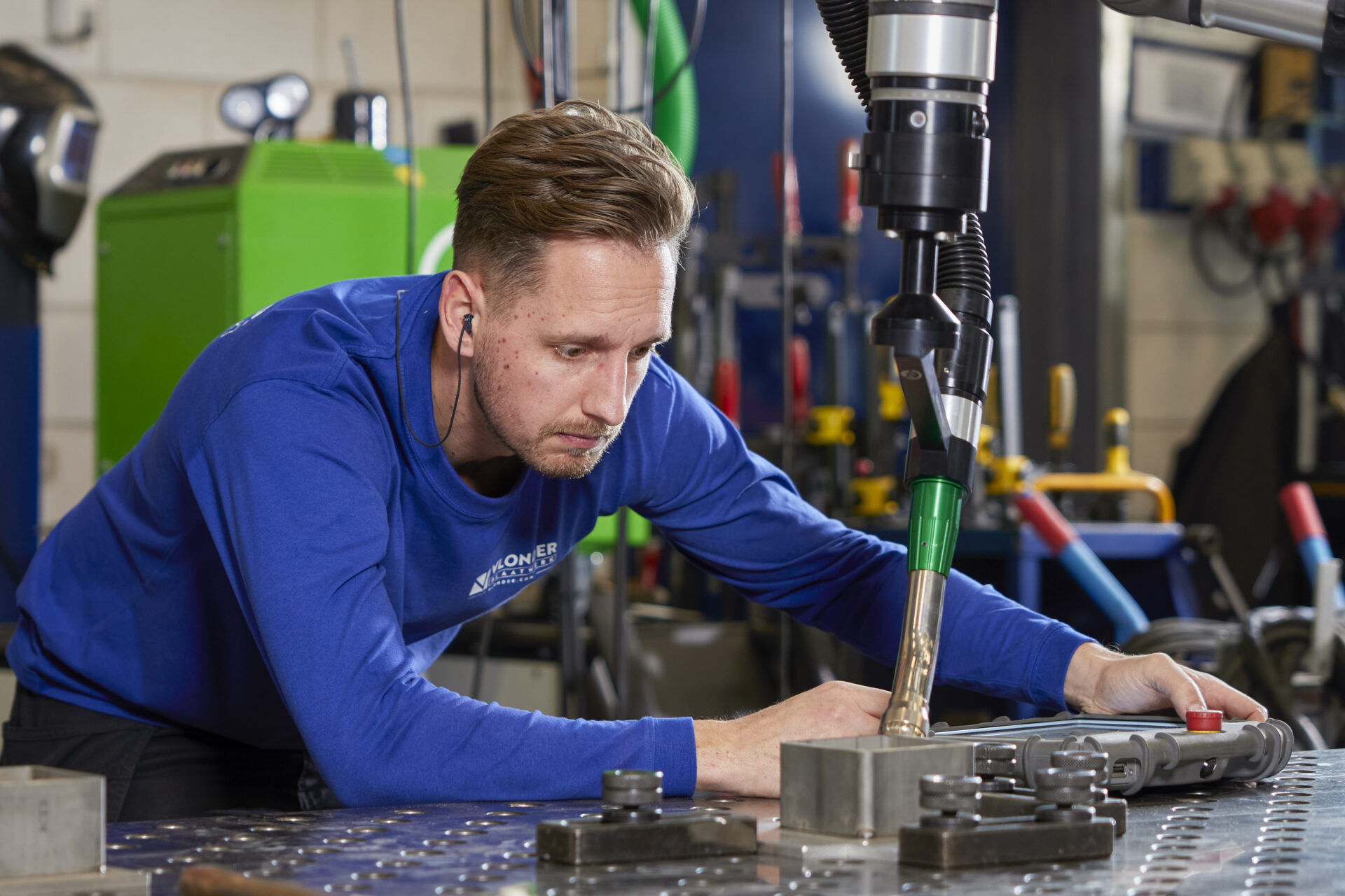De hal van nu is niet meer die van twintig jaar geleden. Lasers, 3D-scanners en een cobot die meelast. “Vroeger waren we dagen bezig met inmeten,” zegt Leon. “Nu scannen we een complete ruimte in 3D in een paar uur, laden de puntenwolk in het tekenpakket en sluiten onderdelen bij montage perfect aan. Sneller, veiliger en netter.”